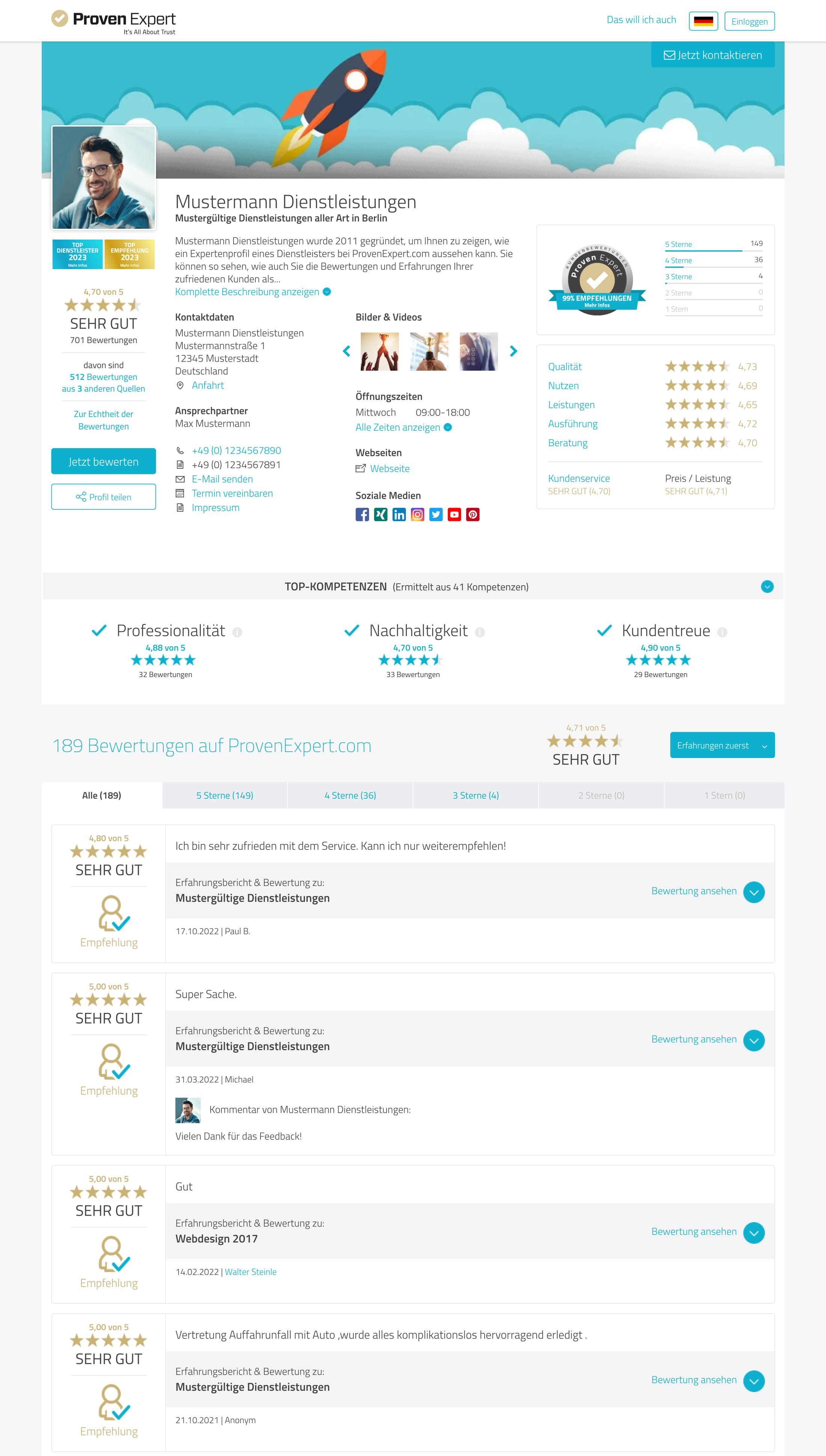 Sie möchten über ProvenExpert berichten? Hier finden Sie alles, was Sie brauchen: Fotos, Logos, Produktbilder, Ansprechpartner sowie Informationen über den Vorstand Remo Fyda und zum Unternehmen.