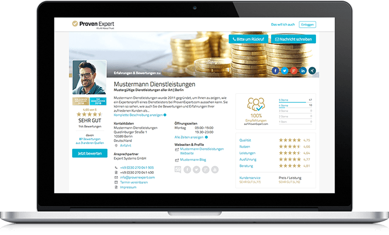 Ein Siegel, alle Bewertungen. Mit den ProvenExpert-Siegeln überzeugen Sie potentielle Neukunden von Ihren Leistungen. Wie Ihr Siegel aussieht und wo Sie es einsetzen, entscheiden Sie selbst.